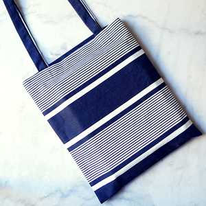 C’est la fin de l’été et ma petite sœur reprend vaillamment le chemin de l’école. Pour lui donner du cœur à l’ouvrage et l’accompagner par la pensée, il m’a semblé qu’un petit tote bag aux allures marines serait parfaitement de circonstance… à défaut, hélas, des parfums aquatiques et …